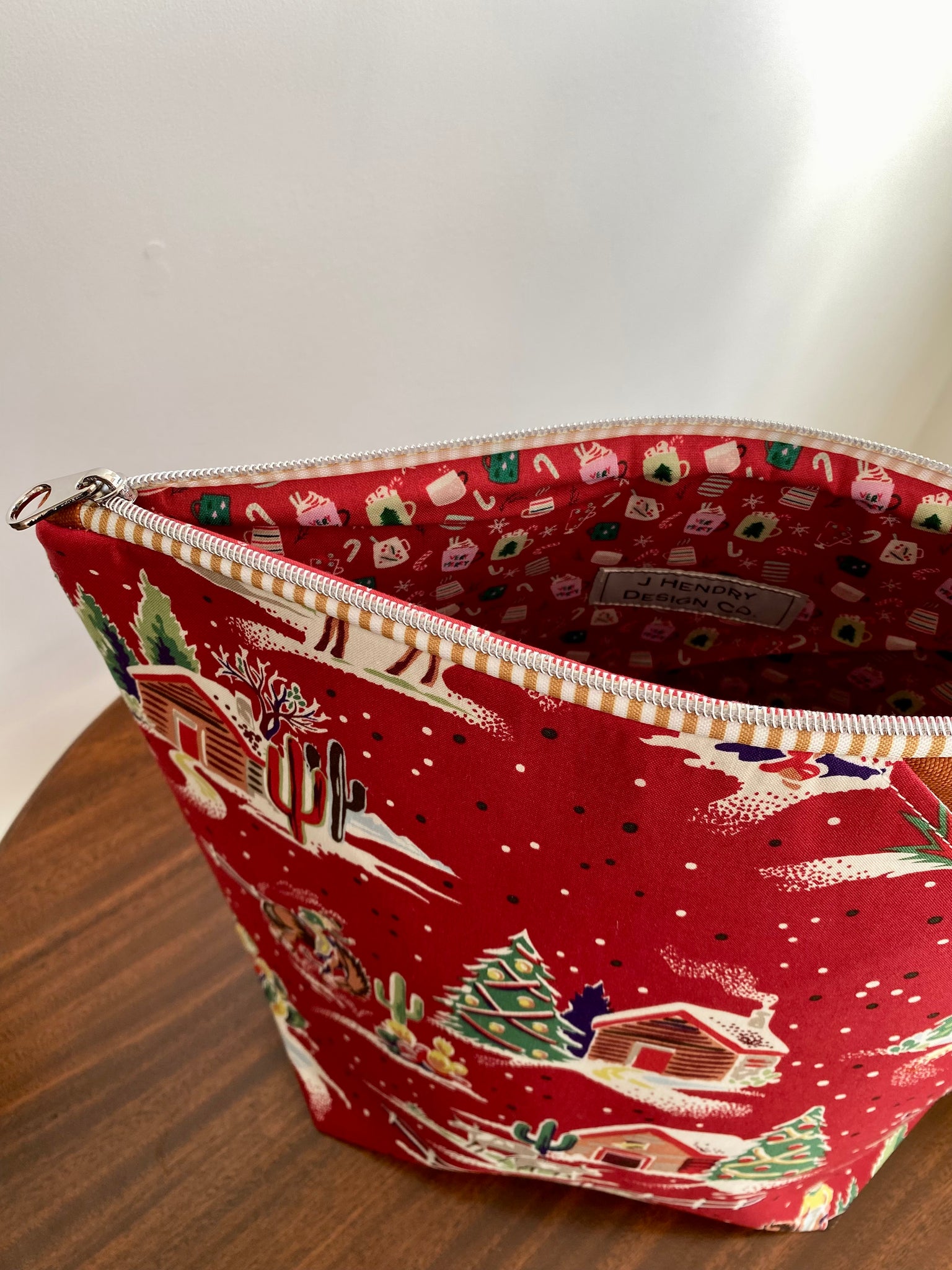 The exterior is made from a sturdy canvas and the interior is made from an interfaced quilting cotton. The zipper on these bags are larger and easier to grab and feature some great pulls that match the theme of the bag!