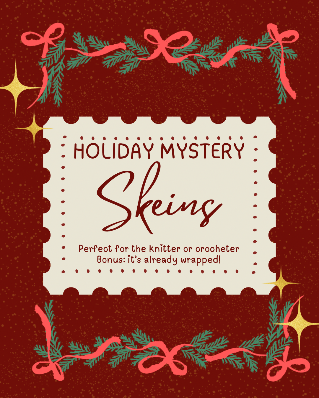 It's the perfect gift for the knitter or crocheter in your life (including yourself)! These Holiday Mystery Skeins are colourways that have never been seen before and are different from our current Holiday line up. They are variegated colourways (not speckled) inspired by the season! Each skein is pre wrapped in Holiday paper so that the mystery remains until you/ they decide to unwrap it. They are perfect for a Christmas Eve cast on or you could knit/ crochet so much of them a day (i.e. knit an inch on a sock a day until Christmas or the New Year).
