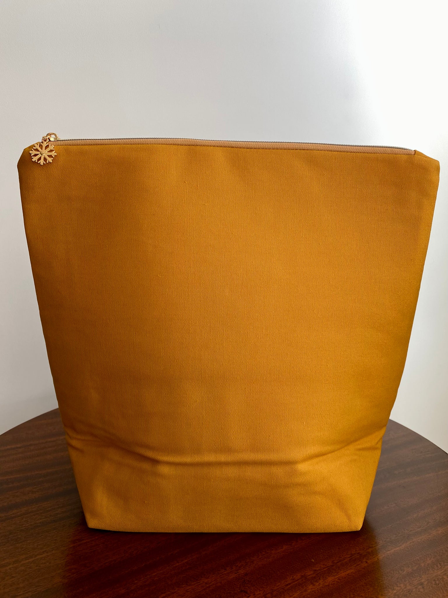 A sweater size bag that features a handy pocket on the outside for all the things that you don't want to tangle with your yarn while you're knitting!