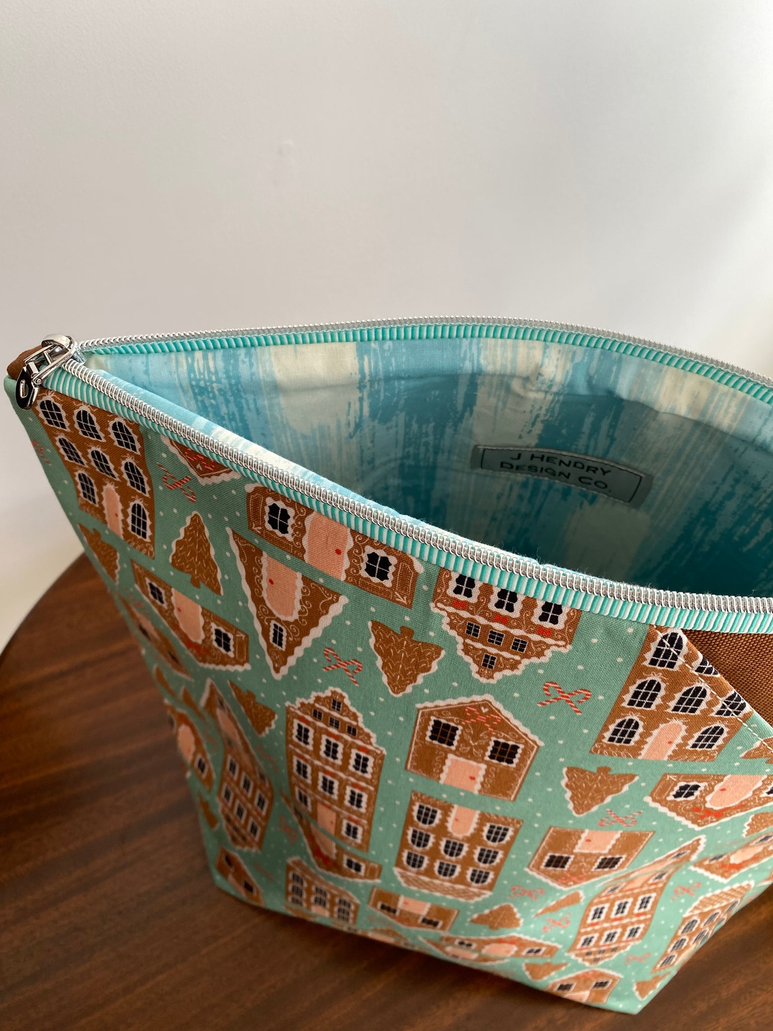 The exterior is made from a sturdy canvas and the interior is made from an interfaced quilting cotton. The zipper on these bags are larger and easier to grab and feature some great pulls that match the theme of the bag!