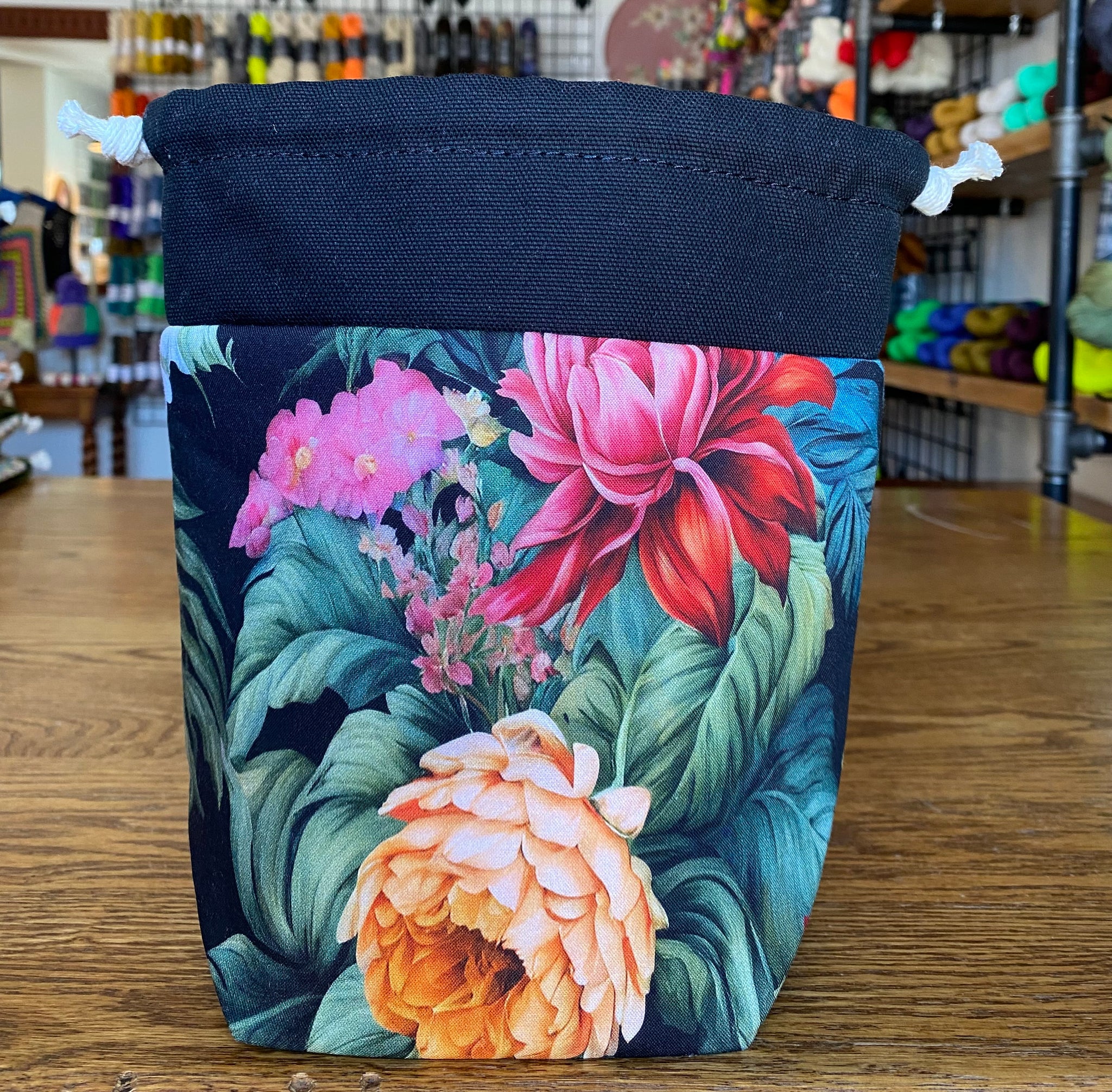 Modelled after our previous bag style the mini drawstring yarn bowl, this one can still go all the places with you! These bags are perfect for a single skein project that you want to take with you everywhere, just in case you get a moment to work on it. This bag is made with a medium flex interfacing allowing for it to be compact when packed away but will stand up on its own. The wide gusset on the bottom gives it stability to be worked out of as if it is a yarn bowl without tipping.