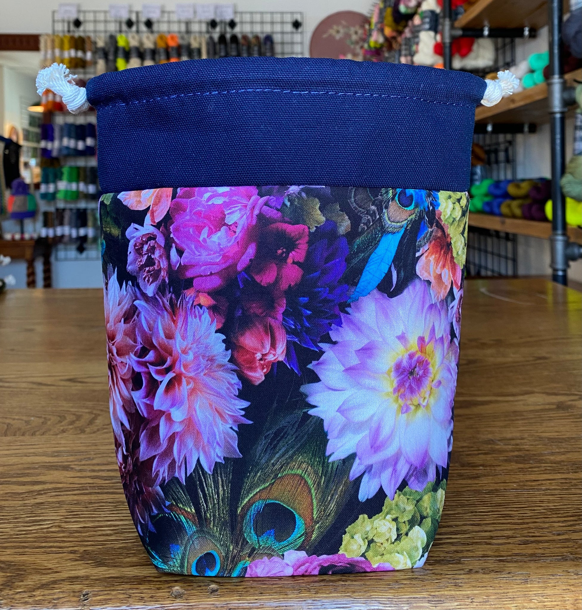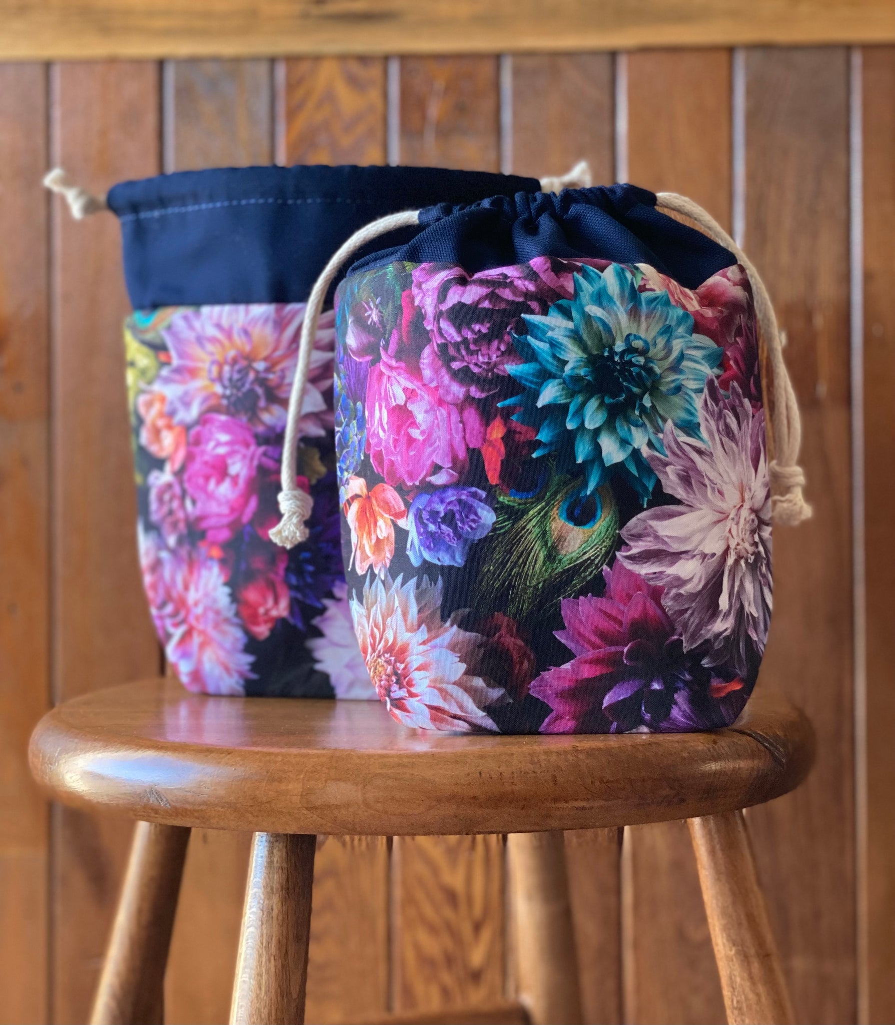Modelled after our previous bag style the mini drawstring yarn bowl, this one can still go all the places with you! These bags are perfect for a single skein project that you want to take with you everywhere, just in case you get a moment to work on it. This bag is made with a medium flex interfacing allowing for it to be compact when packed away but will stand up on its own. The wide gusset on the bottom gives it stability to be worked out of as if it is a yarn bowl without tipping.